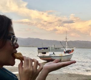 “Kalau bukan hari libur, tidak ada yang jualan, supaya lebih asik menikmati matahari terbenam sambil makan gorengan” Kata Pak Supir