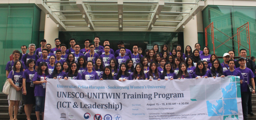 Lippo Village, 15 Agustus 2016, UNESCO-UNITWIN menggandeng Sookmyung Women’s University, Korea, dan Universitas Pelita Harapan, mengadakan pelatihan TIK dan Kepemimpinan dalam upaya pemberdayaan perempuan.